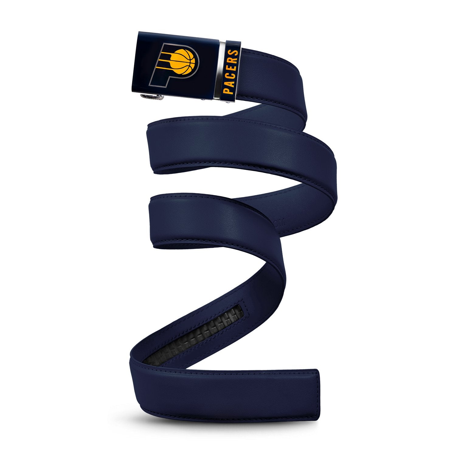 The officially licensed Indiana Pacers Belt from Mission Belt Co. features an imprinted team logo and team name on the buckle under a clear acrylic finish. Genuine leather strap with protective coating and the interior houses a special track which is part of the unique no-holes perfect fit system. The buckle can be detached from the leather strap so you can always trim it down to size.