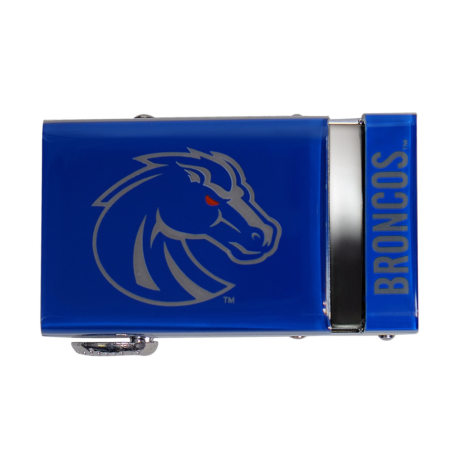 The officially licensed Boise State Broncos Belt features an imprinted team logo and team name on the buckle under a clear acrylic finish. Genuine leather strap with protective coating and the interior houses a special track which is part of the unique no-holes perfect fit system. The buckle can be detached from the leather strap so you can always trim it down to size.