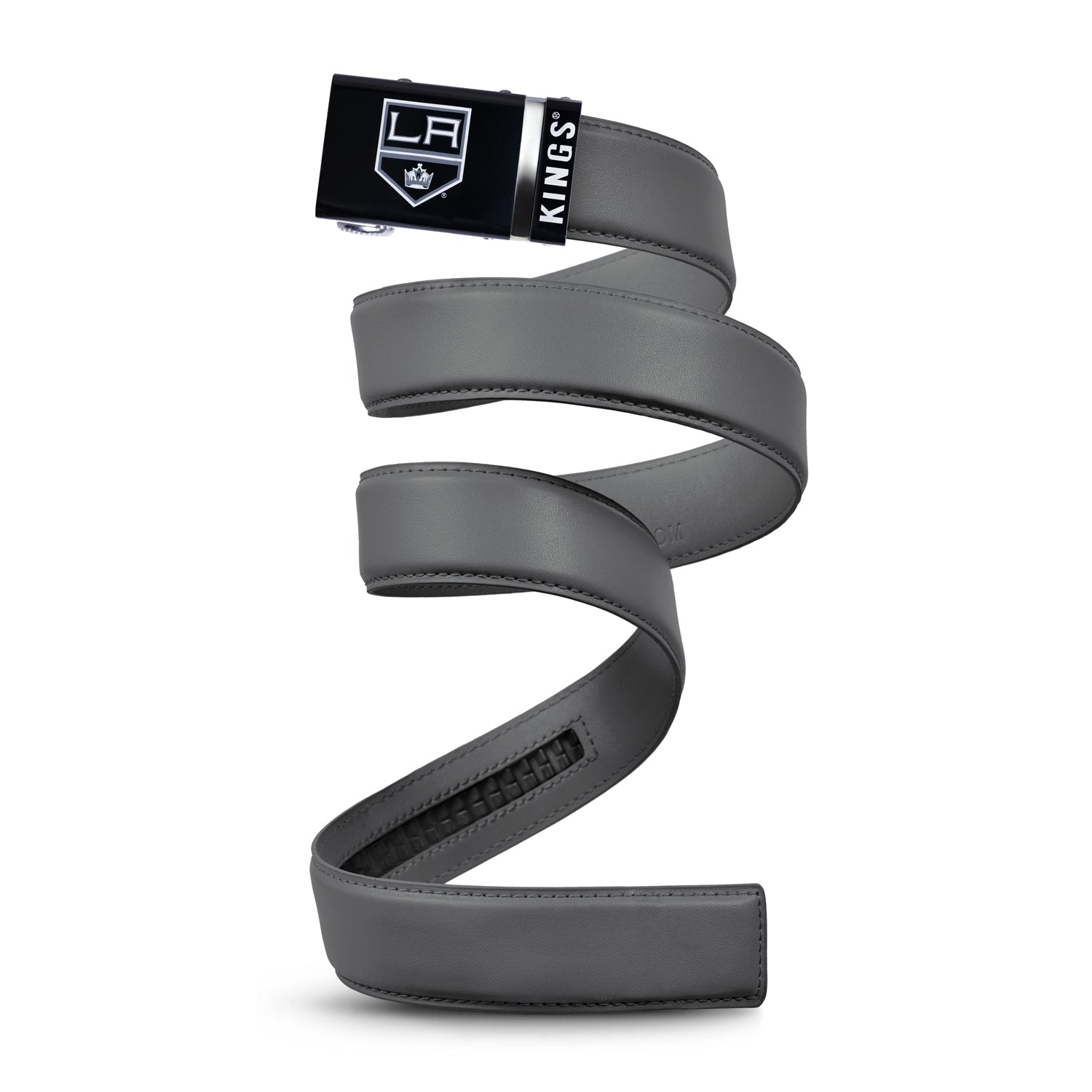 The officially licensed Los Angeles Kings Belt from Mission Belt Co. features an imprinted team logo and team name on the buckle under a clear acrylic finish. Genuine leather strap with protective coating and the interior houses a special track which is part of the unique no-holes perfect fit system. The buckle can be detached from the leather strap so you can always trim it down to size.